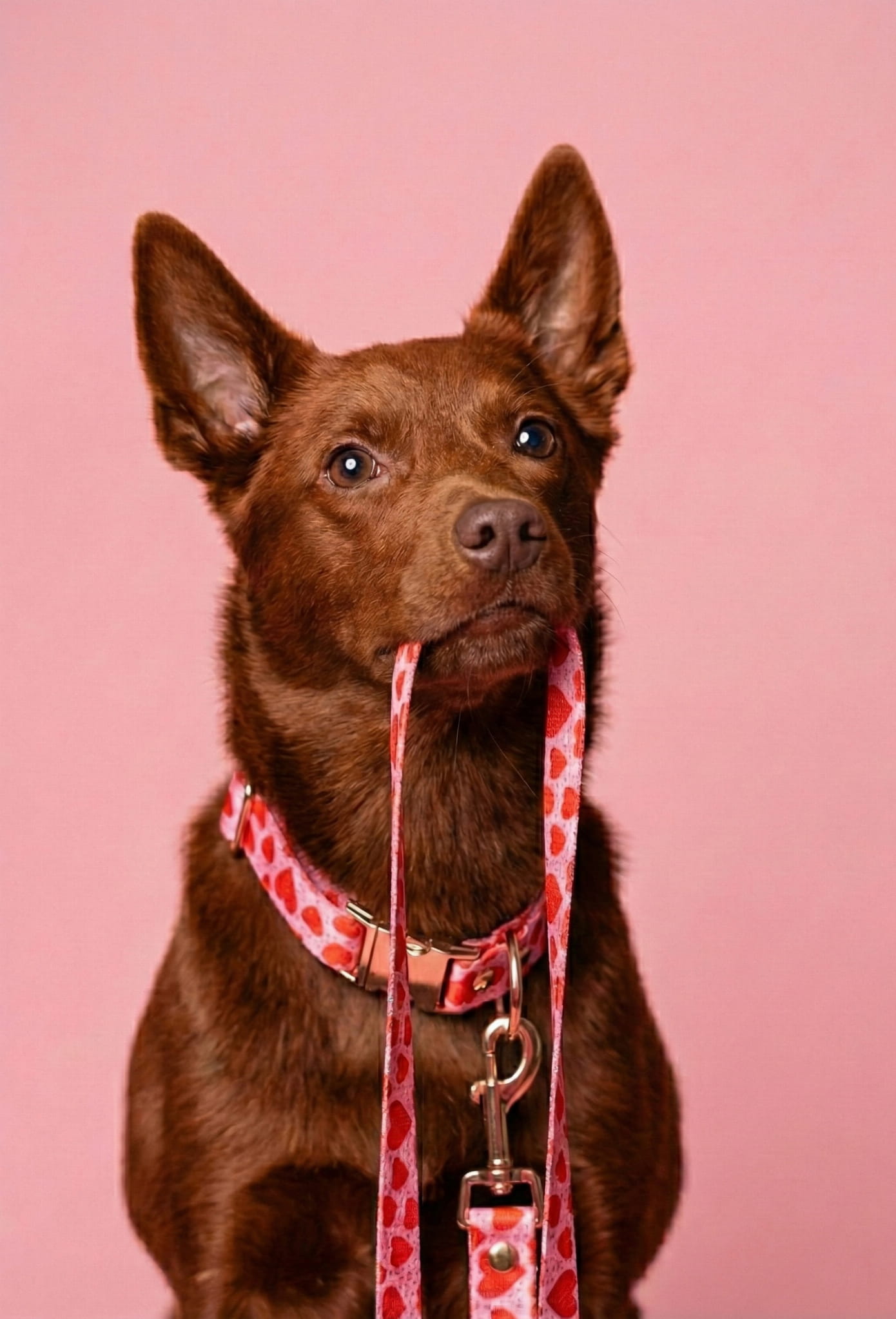 Zestaw spacerowy smycz i obroża + ZAWIESZKA GRATIS/ serduszka/ kolor czerwony/ Kolekcja Love